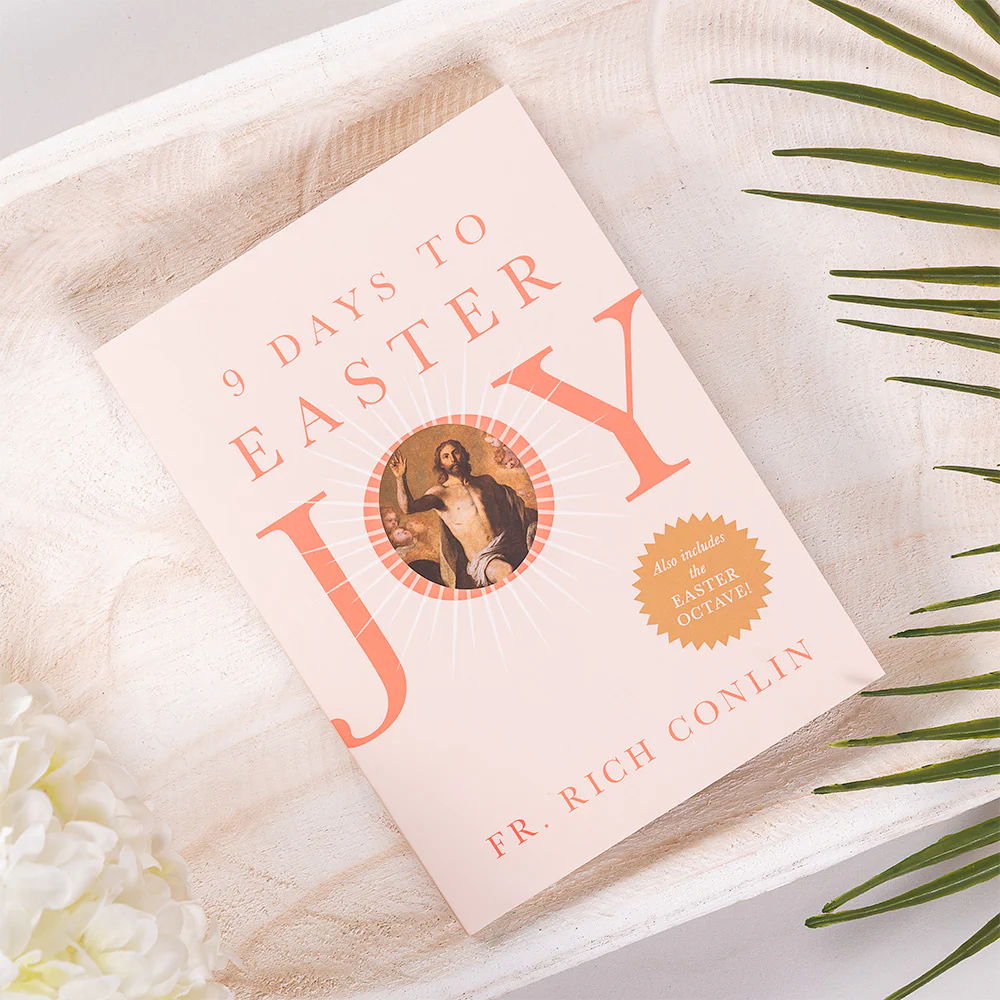 We paired our exclusive candle with the book 9 Days to Easter Joy by Fr. Rich Conlin, a devotional that walks with you through Holy Week and continues through the full Easter Octave.