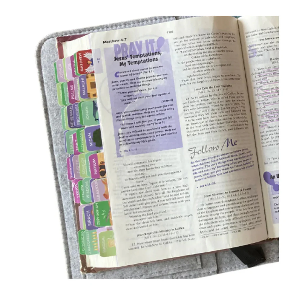 Easy to peel, fold, and apply, these tabs make Scripture more accessible, interactive, and joyful for kids. Whether used at home, in Catholic classrooms, or during parish formation, they help young hearts connect with God’s Word in a tactile and memorable way.