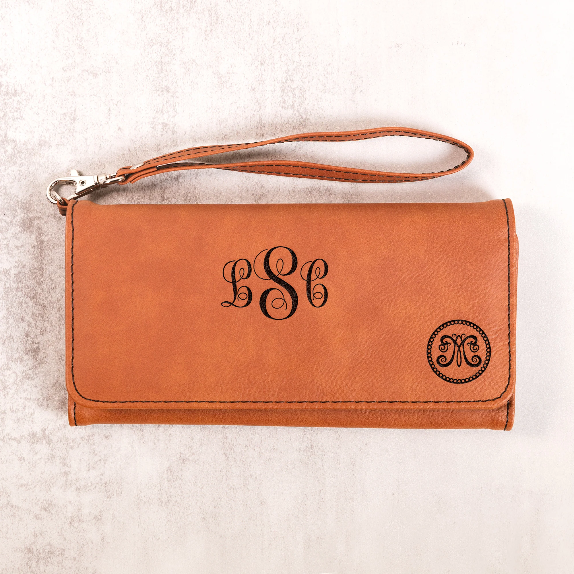 - Monogrammed full-sized Wallet Wristlet